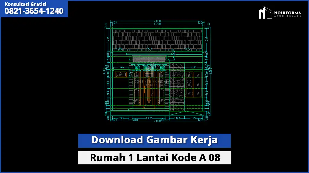 Untuk sahabat Noirforma yang membutuhkan referensi gambar kerja rumah 1 lantai, kami menyediakan Gambar Kerja Kode A-08 lengkap dalam format DWG AutoCAD.
