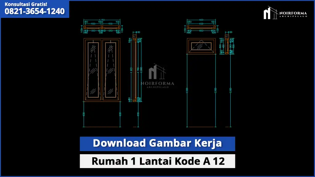 Untuk sahabat Noirforma yang membutuhkan referensi gambar kerja rumah 1 lantai, kami menyediakan Gambar Kerja Kode A-12 lengkap dalam format DWG AutoCAD.