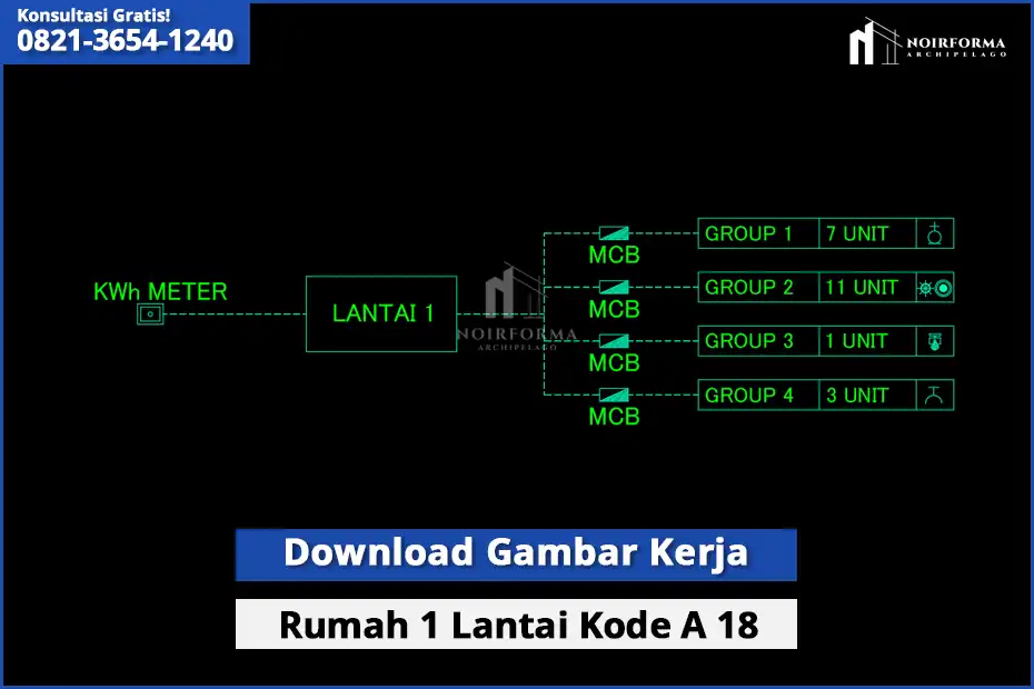 Untuk sahabat Noirforma yang membutuhkan referensi gambar kerja rumah 1 lantai, kami menyediakan Gambar Kerja Kode A-18 lengkap dalam format DWG AutoCAD.